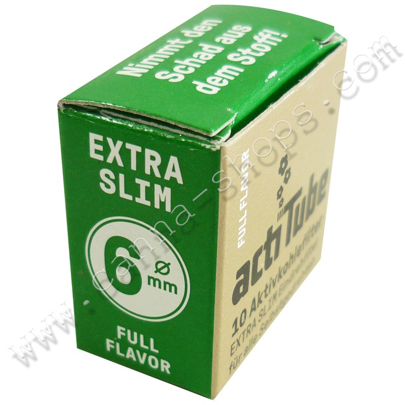 Les fumeurs qui trouvent que les filtres en 7 ou 8mm dénaturent trop le gout de leur herbe pourront opter pour les filtres 6mm EXTRA SLIM FULL FLAVOUR. Avec ses 6 mm, c'est le plus jeune et le plus petit membre de la famille ActiTube, ces filtres au charbon actif conservent toute la saveur de votre herbe.